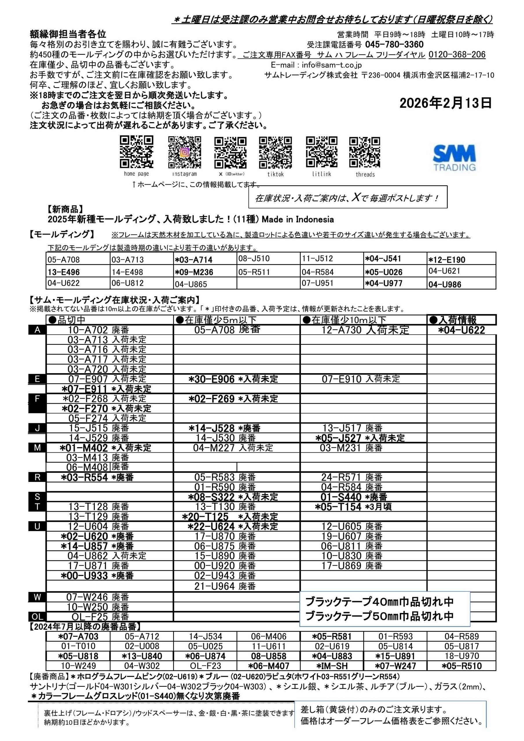 *NEW*サムモールディング入荷在庫状況2026年2月13日