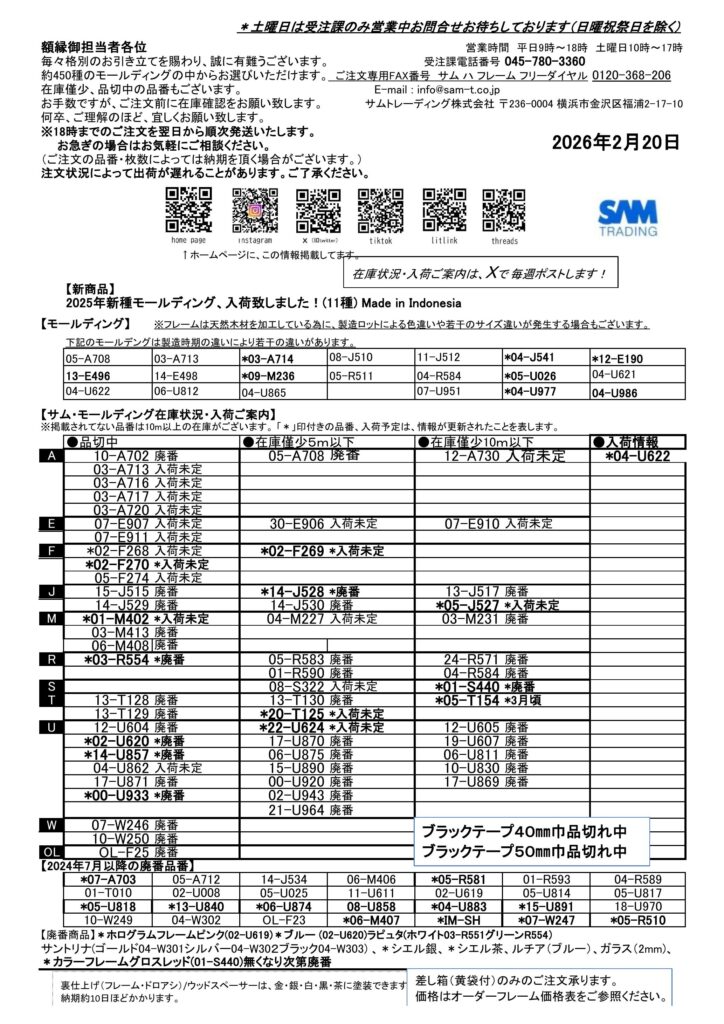*NEW*サムモールディング入荷在庫状況2026年2月20日