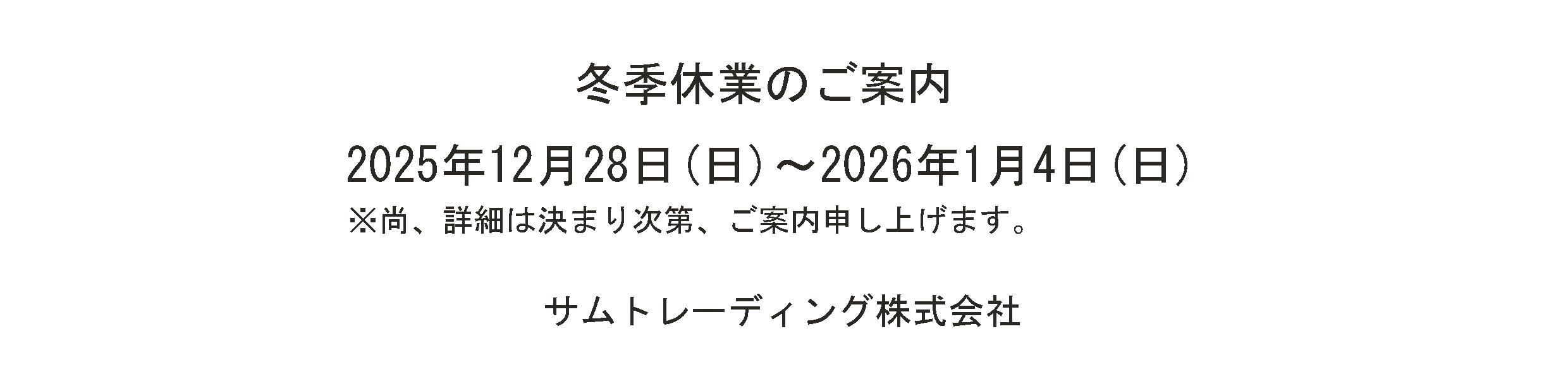 冬季休業に関するご案内