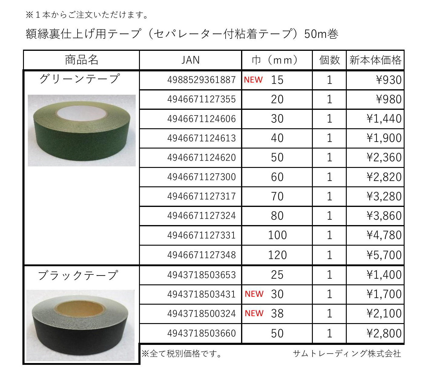 ※標準はグリーンテープまたはブラックテープ貼りとなります。
